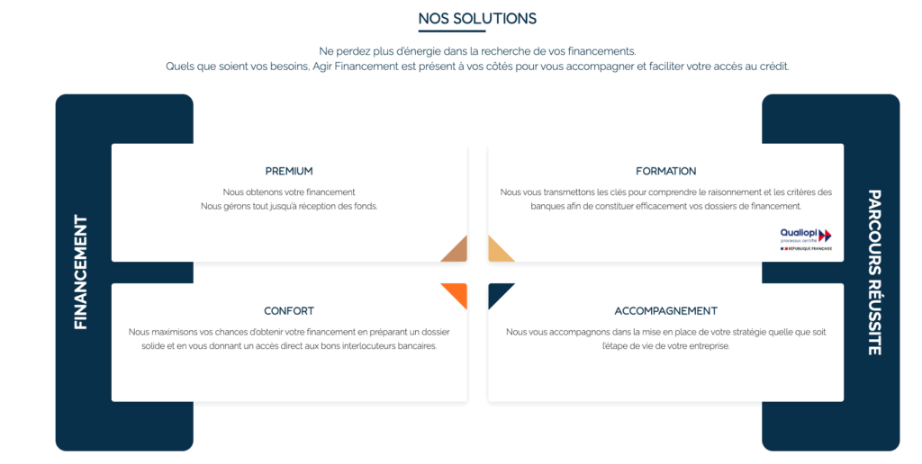 Le site vitrine d’Agir Financement a été conçu pour refléter les valeurs de l’entreprise : proximité, efficacité et accompagnement humain.