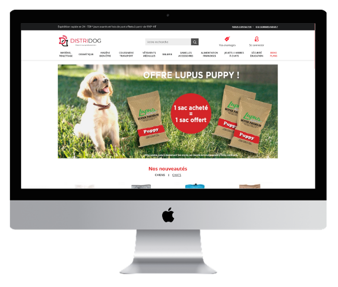 Nous avons conçu et développé la boutique Distridog, un e-commerce B2B dédié aux accessoires, soins et alimentation pour chiens & chats, avec un catalogue massif (10 000+ références) et une logistique pensée pour les pros. Le site tourne sur Prestashop (architecture multiboutique) avec des développements spécifiques signés La Ligne Web.